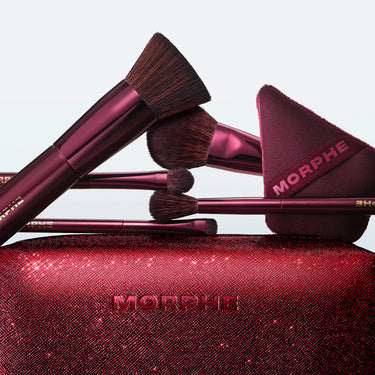 Create subtle or standout looks wherever the season takes you with a limited-edition set of five essential face and eye travel brushes—plus, a dual-sided powder puff and metallic travel bag. Each brush in this collectible on-the-go set is expertly developed with silver ion-infused bristles that reduce harmful bacteria by 99.9%.